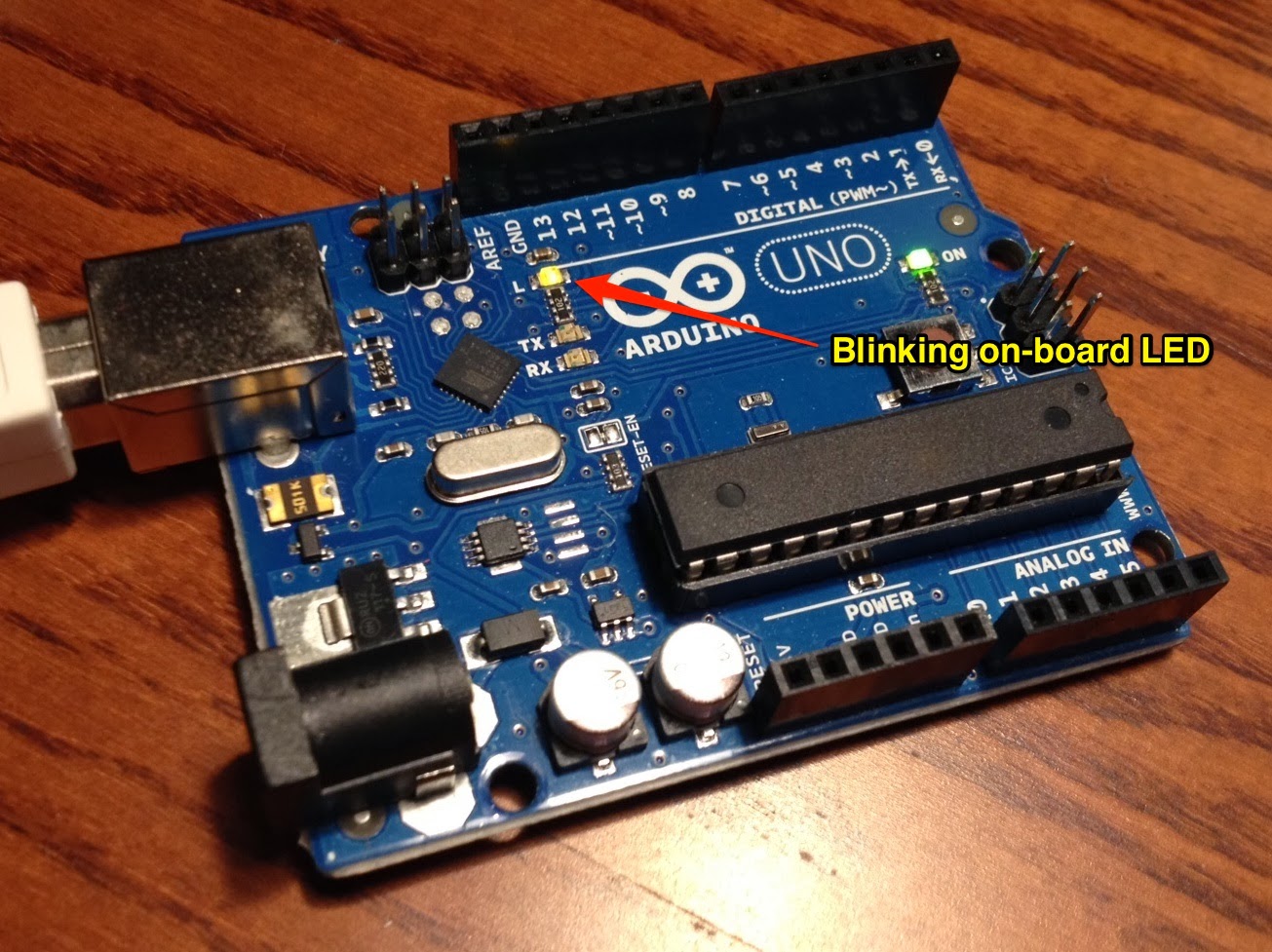 Finally, we will enter, compile and upload our first program to an Arduino board. I will make things easy and include some sample code for you to use. The Arduino program below will blink the on-board LED.