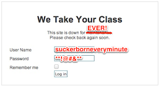 My take on this whole situation is that We Take Your Class simply got caught and that is why they shut down. Kevin was probably (and again, this is purely conjecture on my part so enjoy my fictional tale) a student trying to capitalize on what he thought would be a high demand service. He wanted to be the next Mark Zuckerberg and was willing to sell his Web 2.0 soul to get there. And is Kevin really the site owner? He could be a disgruntled client? We don’t really know, so lets not be too hard on him. No, let’s since he was willing to become the spokesman for this very questionable site.